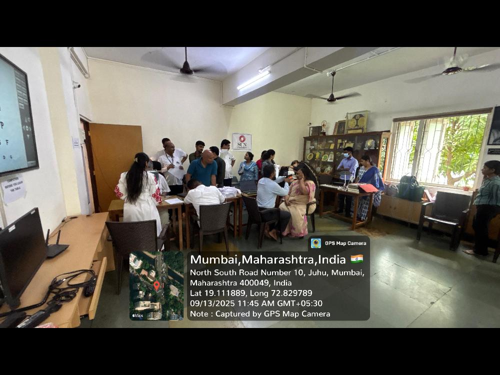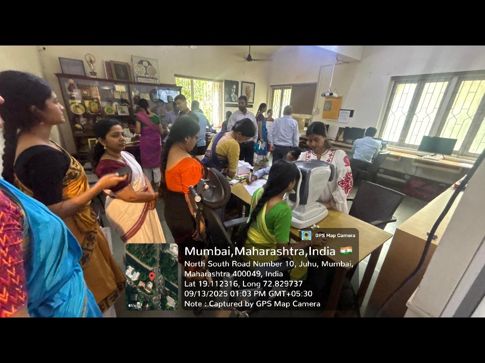 An Eye Check-Up Camp was conducted at Nalanda Nritya Kala Mahavidyalaya on September 13, 2025. The camp, organized in collaboration with Jehan Eye Clinic and led by the Students Council Committee (Smt. Radhika Nair and Dr. Vaidehi Rele Lal) and IQAC Committee (Dr. Meenakshi Iyer Gangopadhyay), provided eye check-ups to teaching, non-teaching staff, and students from all streams. Under the guidance of Dr. Kareeshma Wadia and her team, the camp ran smoothly from 11 am to 4 pm, offering comprehensive eye care services, solutions, and medicines as needed. The event was successfully managed under the guidance of Principal Dr. Uma Rele and President of the Management Shri Rahul Rele.