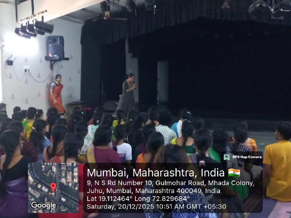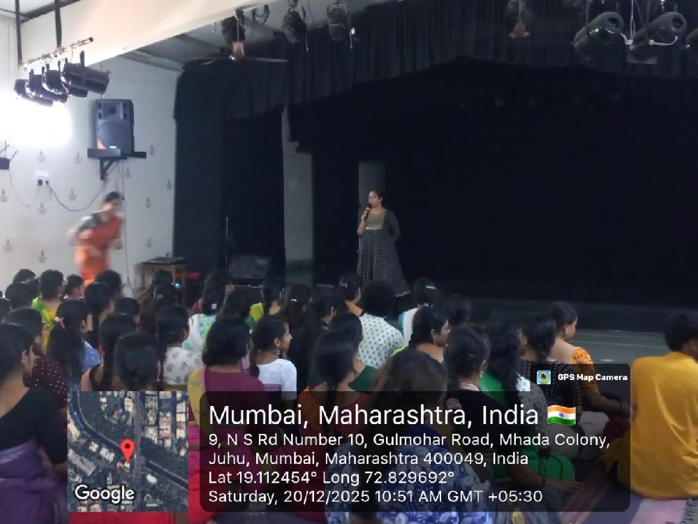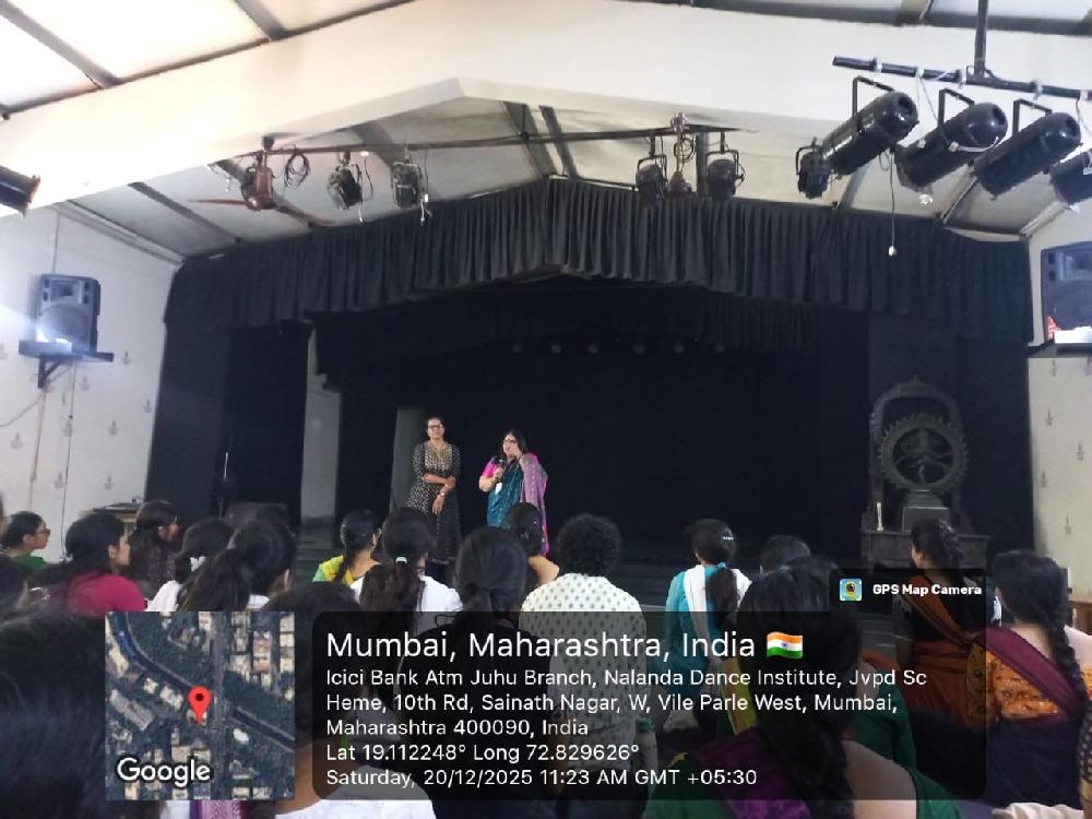 The IQAC, CDC, and Food, Health and Nutrition Committee of Nalanda Nritya Kala Mahavidyalaya organized a calming meditation session titled “Meditation – Your Daily Mental Reset” on Saturday, 20th December 2025, at Kanaka Sabha. The session was conducted by Yoga Teacher Ms. Trupti Rathod and was attended by students, teaching, and non-teaching staff.