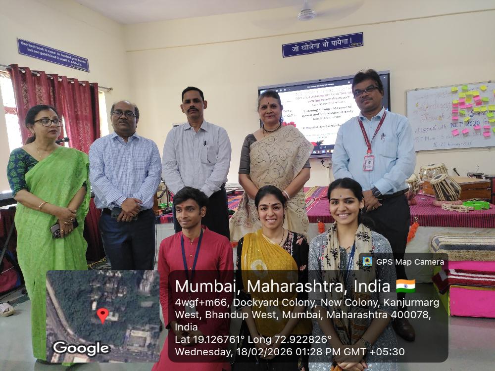 Dr. Meenakshi Iyer Gangopadhyay, Associate Professor, Head of the Dept. (Dance) Nalanda Nritya Kala Mahavidyalaya, conducted a workshop on "Learning through Movement: Dance and Expression in Early Music Education" on 18th February, 2026, for 40 teachers from the States of Maharashtra, Gujarat, Rajasthan, Bihar and Chhattisgarh at KVS ZIET, Mumbai. She was accompanied by the post graduate Bharata Natyam and Kathak students of Nalanda - Kanak Darak, Preshit Meher and Maitreyee Ingle. The workshop explored Child- Centered Dance Pedagogy for Foundational and Preparatory Stages.