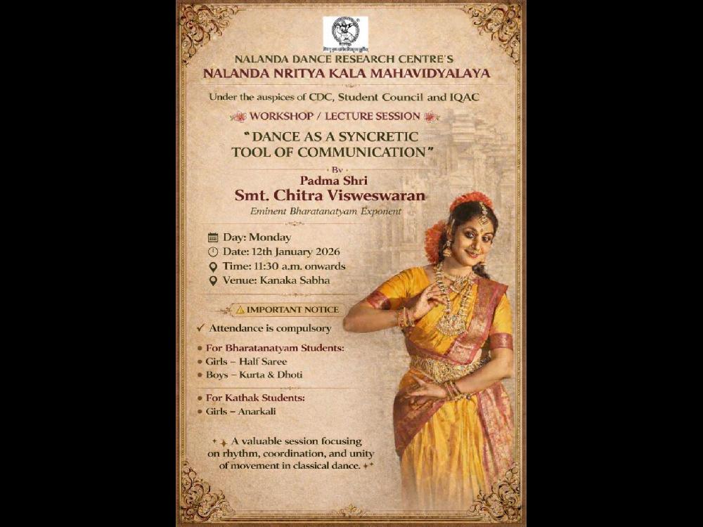 Workshop/Lecture Session by Guru Smt. Chitra Visveswaran on"Dance as a Syncretic tool of Communication"